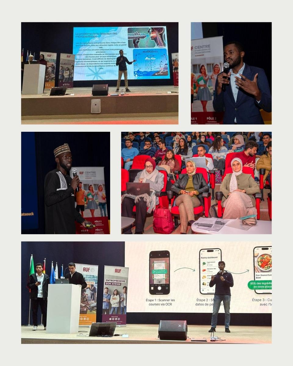 Durant toute la journée du 7 mars 2026, le CNF/ CEF d'Alexandrie a accueilli des étudiants des universités membres de l’AUF. Une vingtaine d’équipes, regroupant plus de 70 participants, ont collaboré pour imaginer et présenter des solutions créatives et inspirantes à l’intersection de l’#intelligence_artificielle et du #développement_durable.